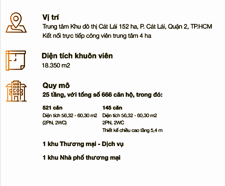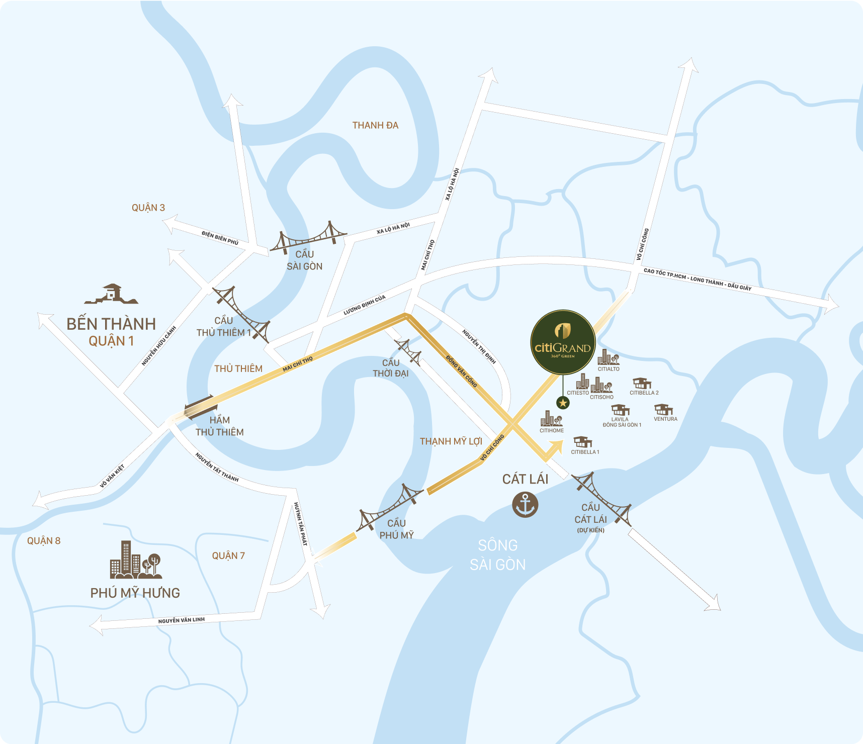 Nằm trong khu quy hoạch đồng bộ 152ha của Khu đô thị Cát Lái, thừa hưởng trọn vẹn những tiện ích cao cấp nơi dòng chảy giao thương và cộng đồng tri thức hội tụ, CitiGRAND chắc chắn sẽ trở thành nơi dừng chân lý tưởng cho cộng đồng sáng tạo thế hệ mới.